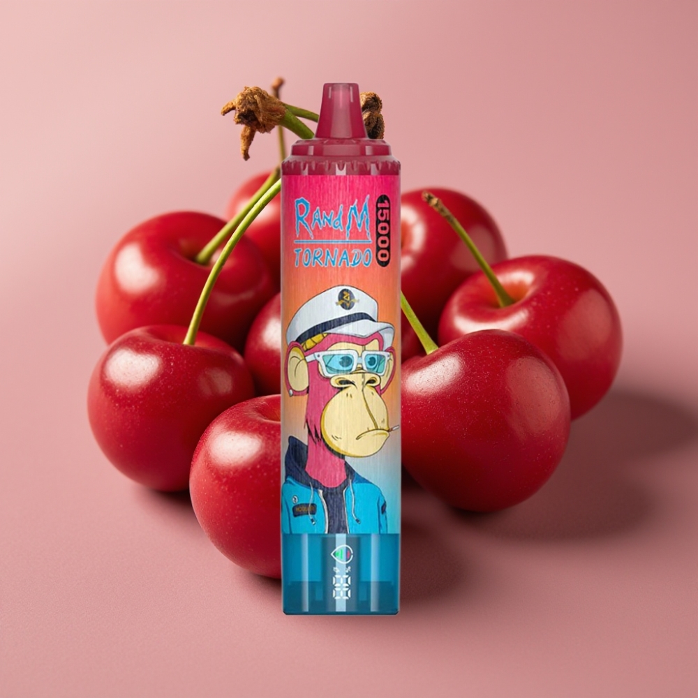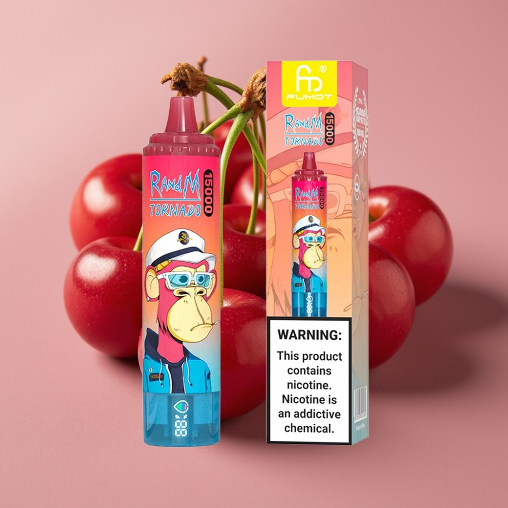 RandM Fumot Tornado 15000 Puffs Vape Desechable Cereza con Pantalla LCD y USB Tipo-C