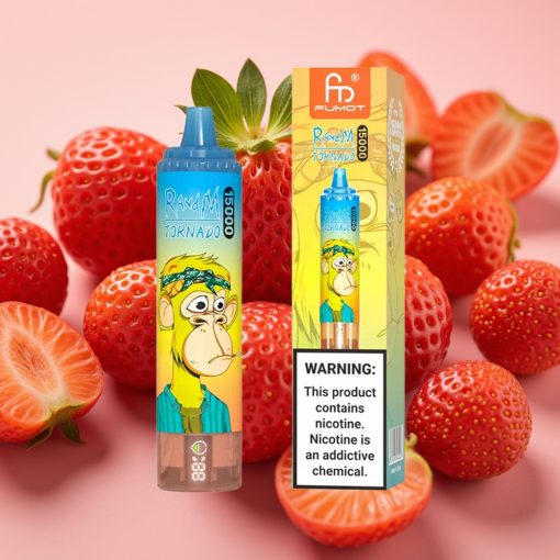 RandM Fumot Tornado 15000 Puffs Vape Desechable Fresa con Pantalla LCD y USB Tipo-C