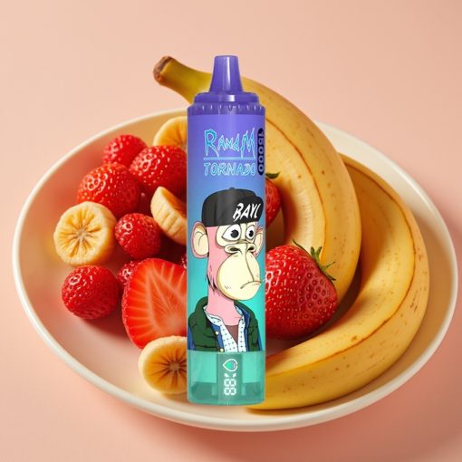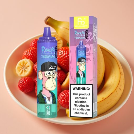 RandM Fumot Tornado 15000 Puffs Vape Desechable Fresa Plátano con Pantalla LCD