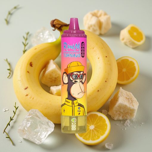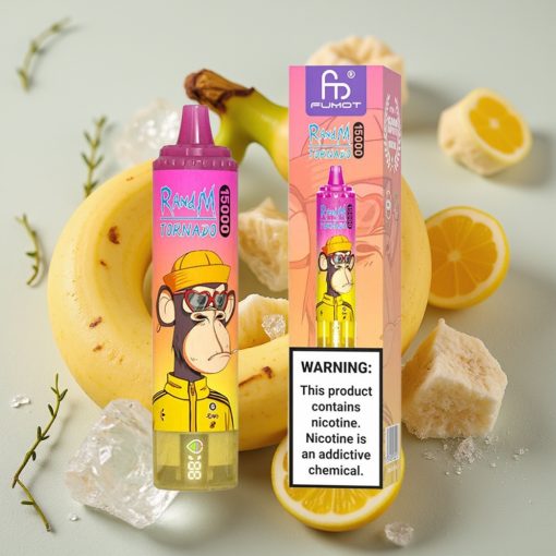 RandM Fumot Tornado 15000 Puffs Vape Desechable Plátano Hielo con Pantalla LCD y USB Tipo-C