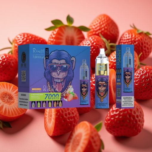 RandM Fumot Tornado 7000 Puffs Vape Desechable Fresa Red Bull y Aire Ajustable